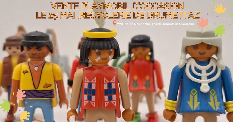 Le samedi 25 mai 2024, la Recyclerie de Drumettaz organise une grande vente de Playmobil et autres figurines de seconde main, en partenariat avec Jeu Change et avec la mobilisation de toute l’équipe de l’atelier Jouet des Chantiers Valoristes.