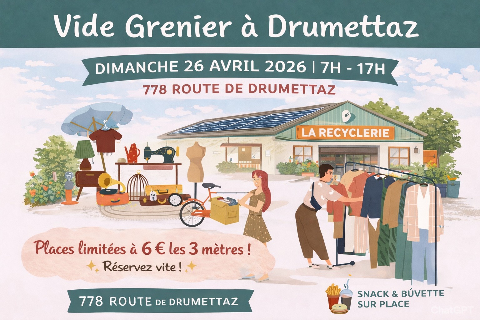 La recyclerie de Drumettaz vous ouvre ses portes pour une journée conviviale et pleine de bonnes affaires à l’occasion de son vide-grenier.